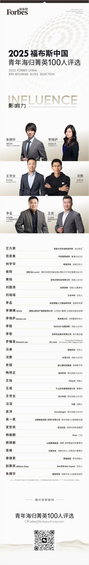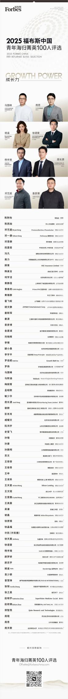 “2025福布斯中国青年海归菁英100人评选”结果如下: