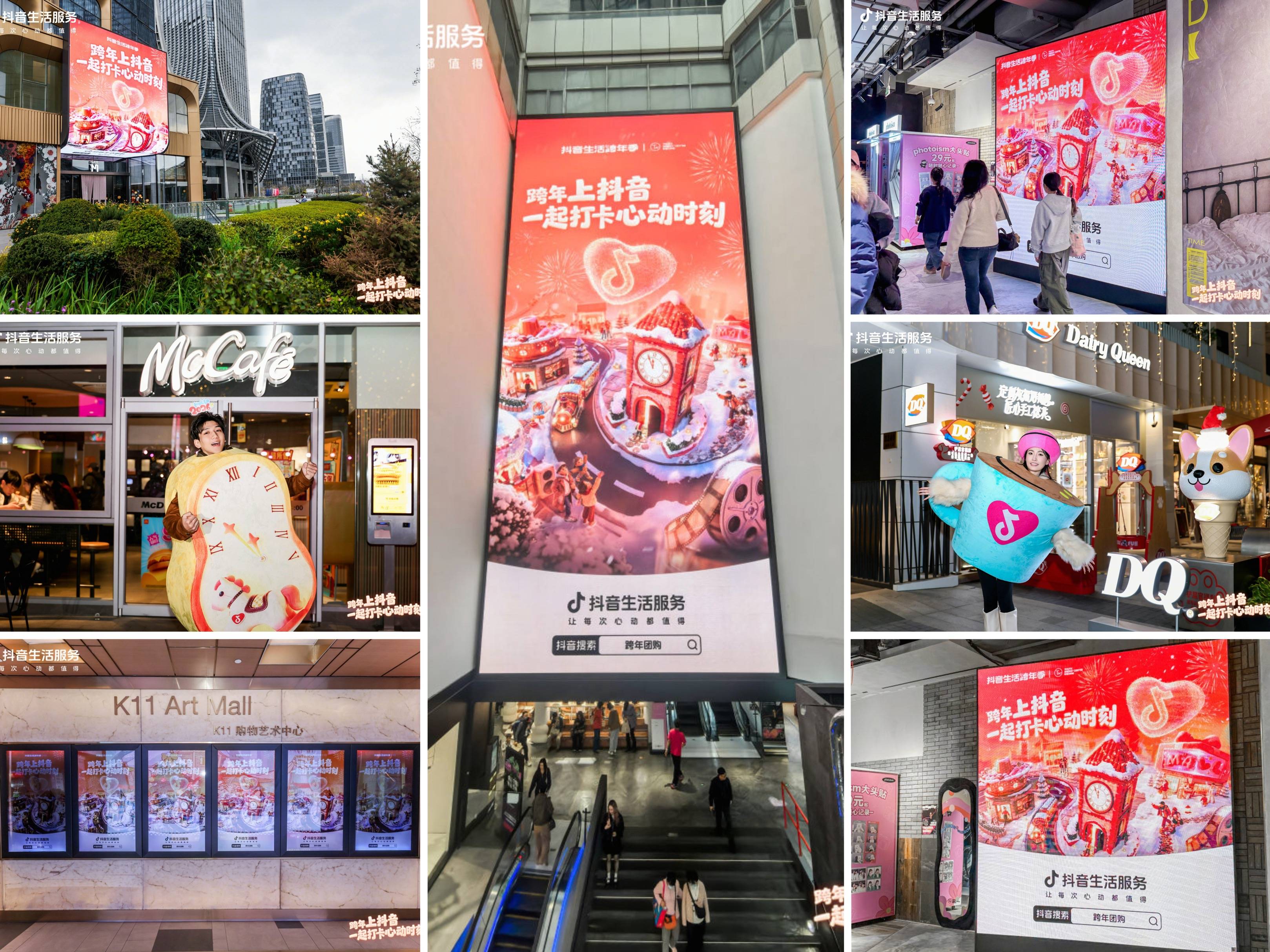 当“RUNto”遇见西岸万花筒仓的“云朵猫”,当罗丹的“思想者”空降同样时尚的新天地,抖音生活服务打卡装置特别融合上海美术学院“新年小马”设计及徐汇重点12处地标商圈……不管爱活力动感、软萌治愈还是潮酷神秘,在这里可以兼得,上海的跨年从来不只有一种答案~本次「抖音生活跨年季」深入城市重点商圈,从潮流的新天地拉开序幕,回归拥有“上海水泥厂”标志性建筑龙华商圈西岸筒仓下,将上海潮流活力与历史底蕴无缝融合。