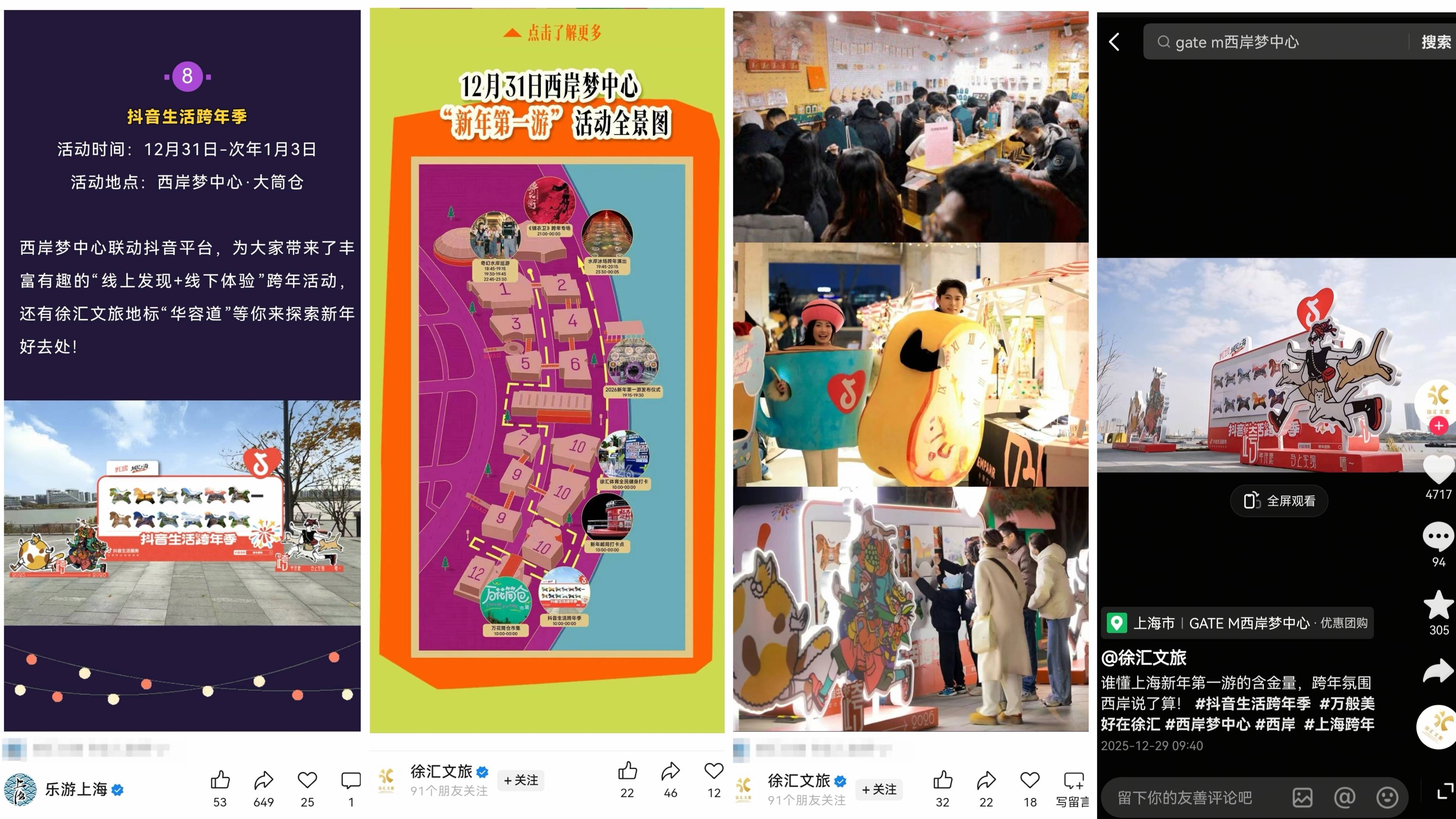 作为官方合作伙伴,上海文旅官方公众号、徐汇文旅官方公众号及抖音平台官方号助力「抖音生活跨年季」活动传播。